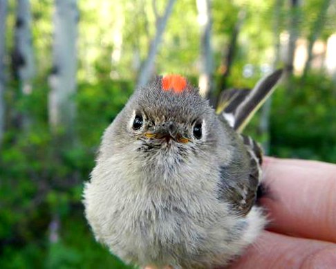 Ruby-crowned Kinglet, caught on the Kelly Campus of the Teton Science School, in Grand Teton National Park. June 2014.