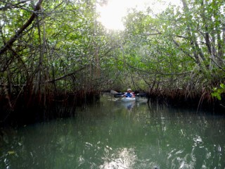 Betty loves the mangroves, and she loves to tell people about them, so the morning was not only fun but educational. She had us all lick black mangrove leaves, to taste the salt secreted on them. Surprisingly, I managed to teach her a few things too, about preen glands and how not every species of bird has them (during my research on parrot coloration I learned that some parrots and a few other birds, ostrich being one, don’t have them). We also discussed feather lice, ticks on birds (and people) and feather-degrading bacteria and fungi. You know, normal things to talk about with friends while kayaking. And, I will have you know, I did not bring up any of those subjects, I just added to the conversation. It started when we saw an anhinga preening and went from there.