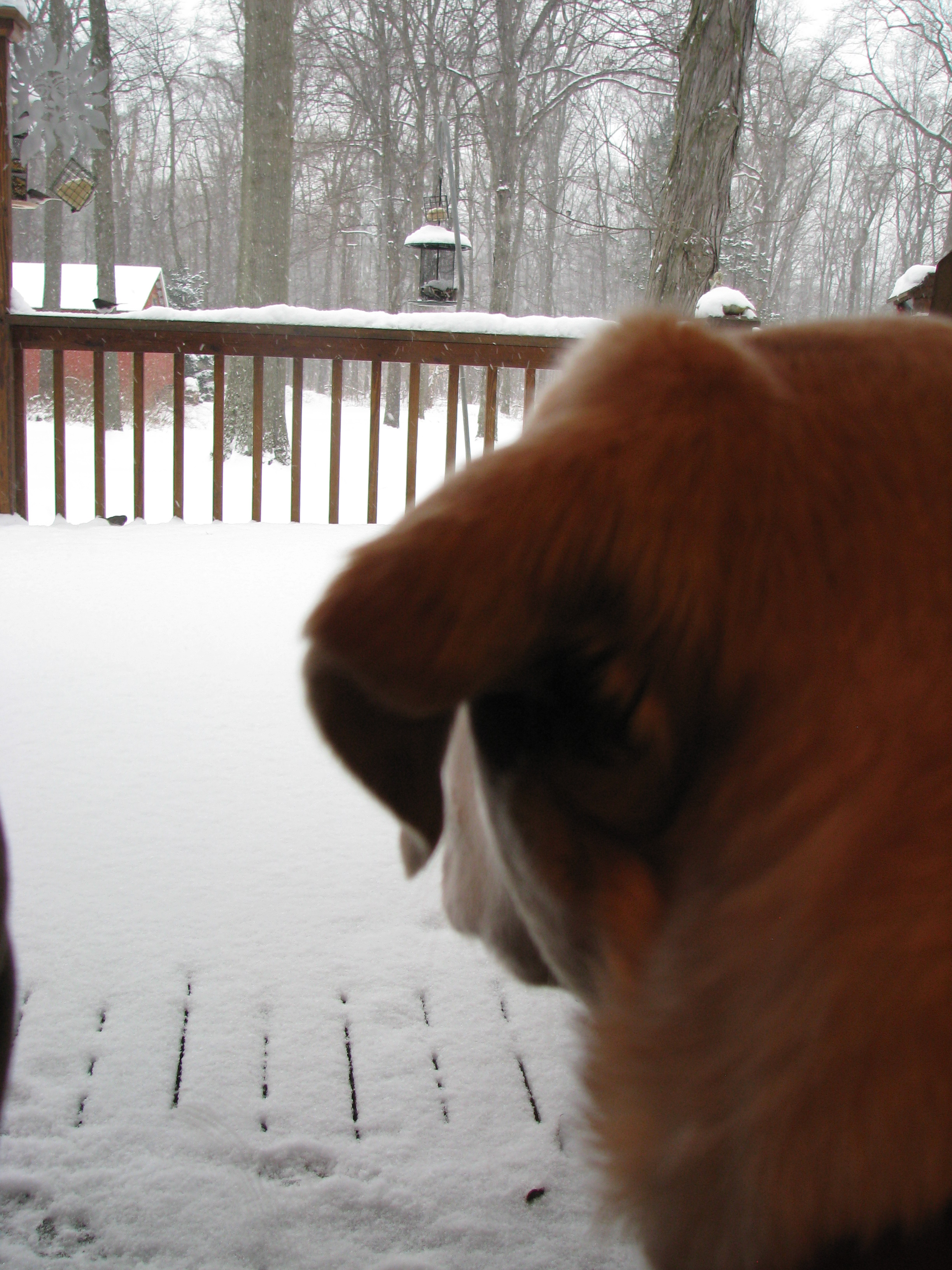 On the deck, just outside the sliding-glass door, there are red specks in the snow, either cayenne pepper flakes or blood my younger brother Eric says. Mom puts pepper in the bird seed to keep away the squirrels, and it works. Our cat Jasper caught a dark-eyed junco from the feeders yesterday, played with it on the deck just outside the door. I wish I was strong enough to have gone out and ended its misery. But I’m not.