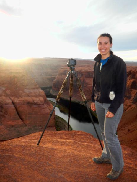Pretending to be a photographer, and being very careful not to stumble and knock the tripod over the canyon rim.