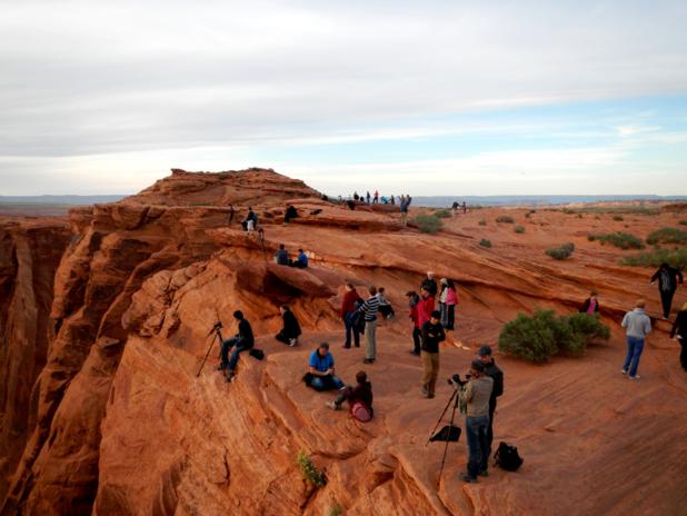Some of the people who joined us to watch the sunset. After I took this picture, more people arrived, until there were at least 100 total loitering on the canyon rim.